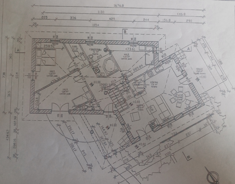 -felső szinten (95 nm): előtér, 3 szoba, fürdőszoba, WC, gardrób rész, egy kis szintkülönbséggel tágas nappali+konyha+étkező teraszkapcsolattal és egy télikerttel, lépcsőlejáró az alsó szintre