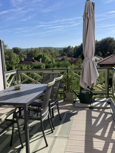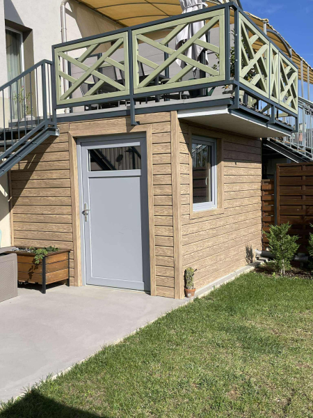 déli tájolású, napfényes terasz a nappali szintjén (15 m²) és a kerti szinten (15 m²)