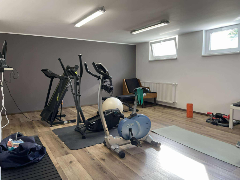 Pinceszint (félszuterén): edzőterem, moziszoba, tároló, háztartási helyiség, fürdő és mosókonyha – tökéletes kikapcsolódásra és a mindennapokra.