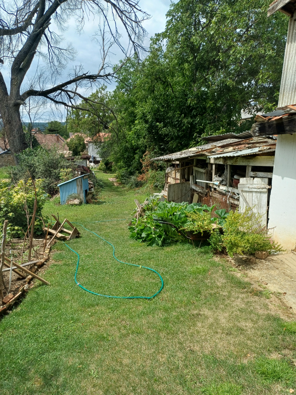 A házhoz tartozó hátsó kerti rész ideális helyszín lehet növénytermesztéshez vagy akár kisebb gazdálkodáshoz is.