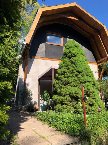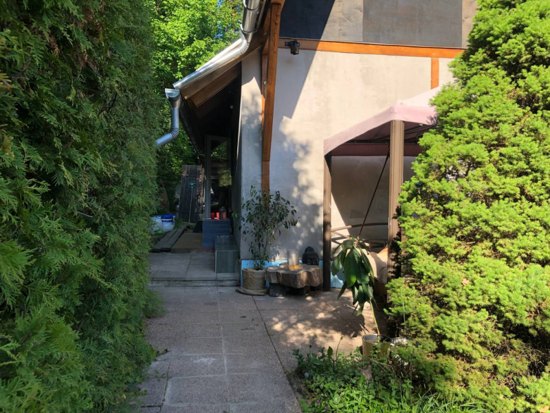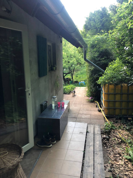 Az udvaron kis melléképület, magaságyások, gyümölcsfák, gyógynövények, a szomszéd ingatlanok szépen rendezettek.