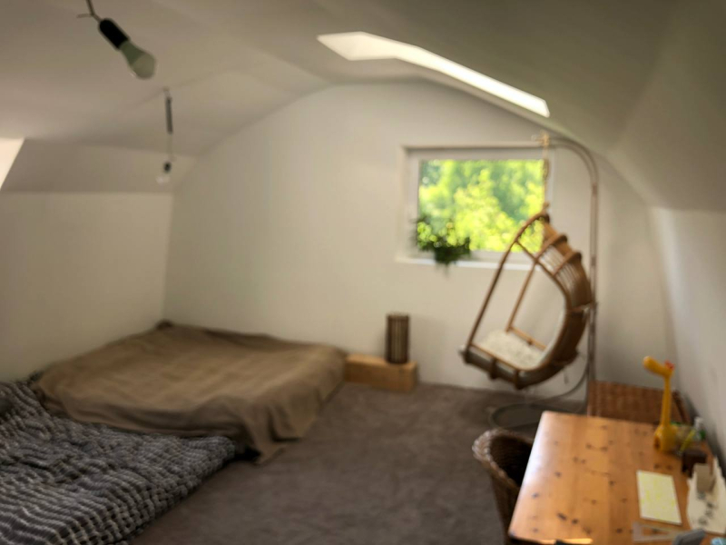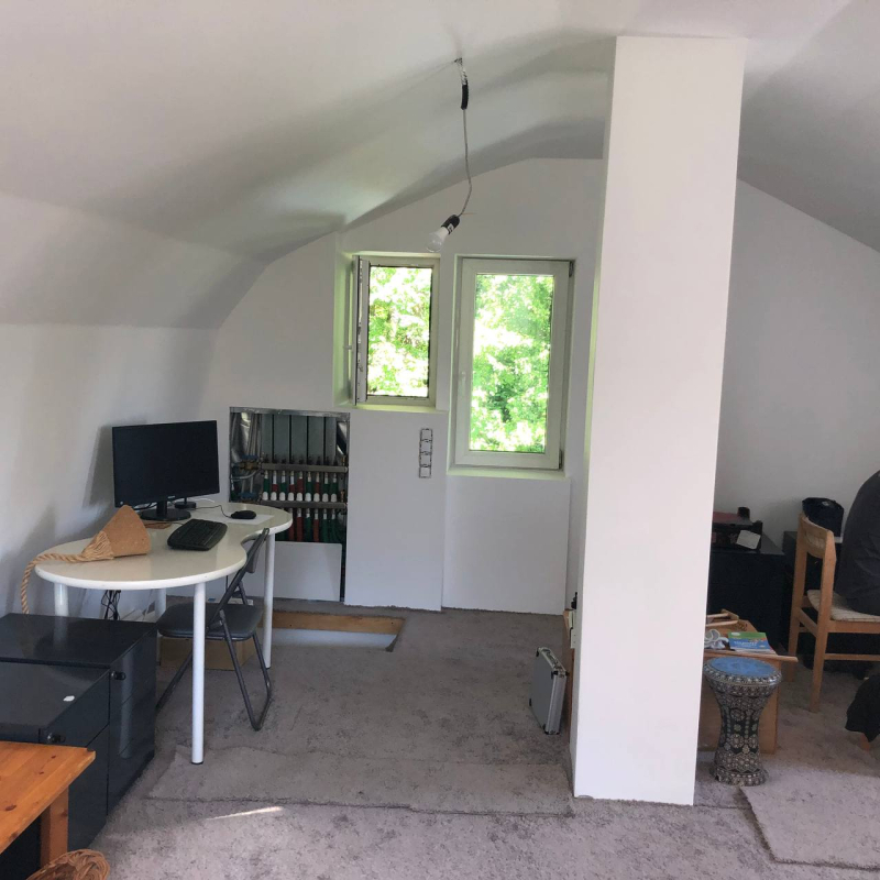 Az emelet jelenleg egy légtér, de könnyedén kialakítható 2 db szoba.