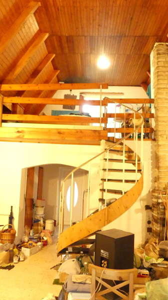 A nappali felett egy 15 nm es galéria van, aminek szinte az egész területe állva bejárható.