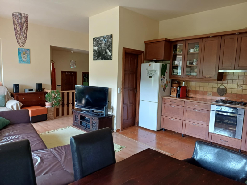 -felső szinten (95 nm): előtér, 3 szoba, fürdőszoba, WC, gardrób rész, egy kis szintkülönbséggel tágas nappali+konyha+étkező teraszkapcsolattal és egy télikerttel, lépcsőlejáró az alsó szintre