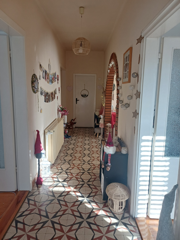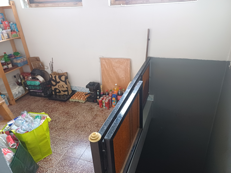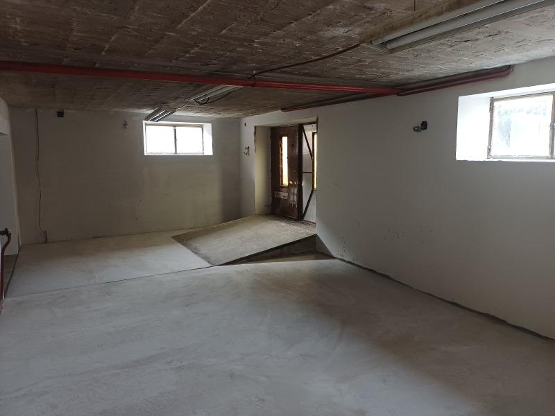 A pinceszintről a 80-as években hozzáépített épületrészen keresztül, fedett lépcsőházból jutunk a normál lakószintre.