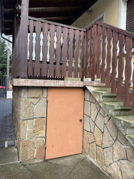 A pinceszintről a 80-as években hozzáépített épületrészen keresztül, fedett lépcsőházból jutunk a normál lakószintre.