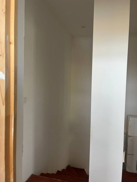 A ház burkolása helyenként befejezésre vár, illetve a külső szigetelés/színezés nem készült el.