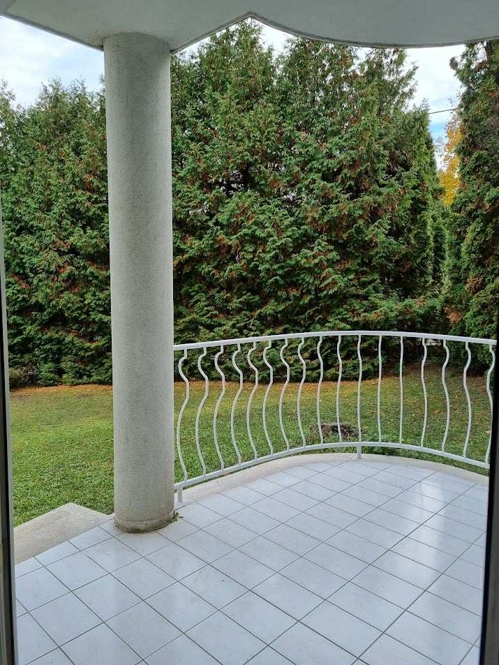 A nappaliból közvetlen kijárat nyílik a teraszra, amely a közös kert egy csendes, eldugott részén található, teljes intimitást és nyugalmat biztosítva.
