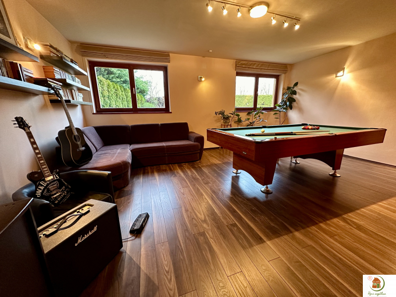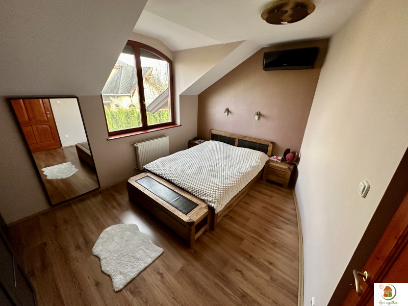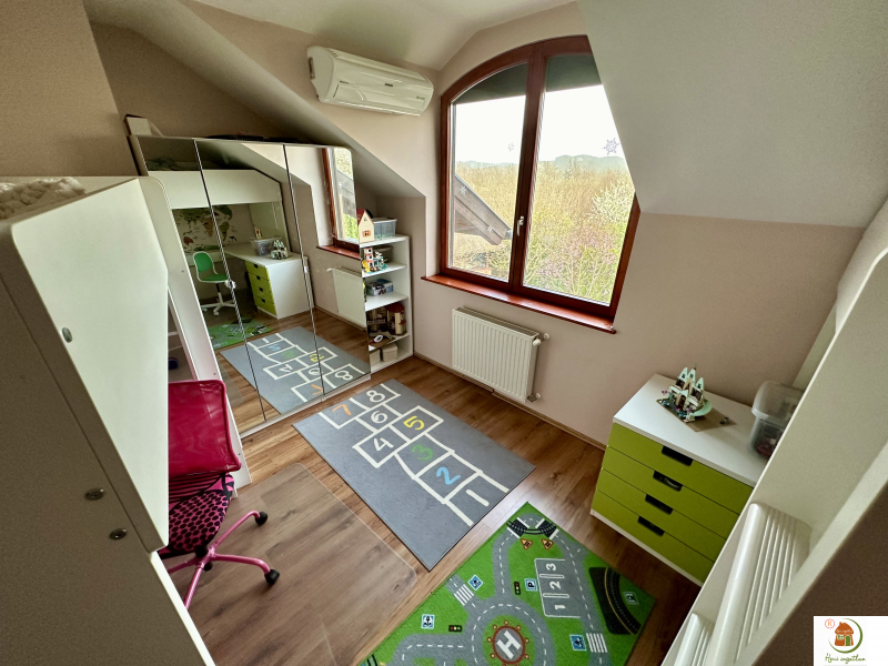 A ház jelenleg egy kétgyermekes családnak tökéletes, miközben az alsó szinten egy külön lakrész lehetősége is adott.