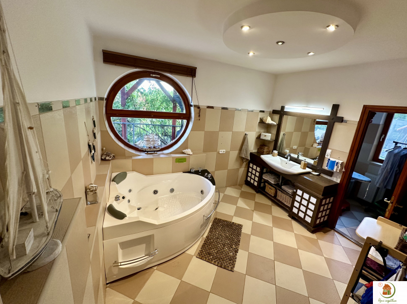 Piliscsaba kedvelt, természetközeli lakóparkjában színvonalas, jó elosztású, tágas, ötszobás családi ház duplagarázzsal, nagy terasszal, gyönyörű kerttel eladó.