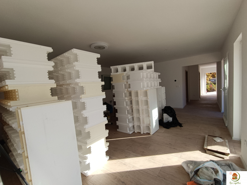 Alapozás: lemezalap terasz és ház együtt, benne 20 cm EPS lépésálló szigeteléssel - a terasz alatt is van szigetelés. A ház lemezalap 20 cm EPS 100 lépésálló szigeteléssel lett összesen 30 cm vastagságban kialakítva.