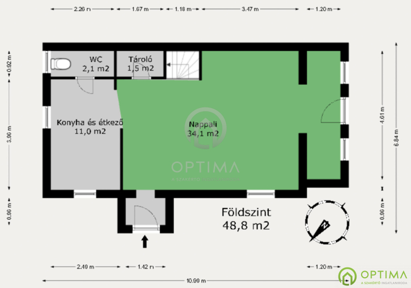 A földszint kiváló életteret biztosít az ideköltözők számára, továbbá kertkapcsolattal rendelkező nappalija tökéletes helyszíne a nyári grillparty-knak. A házhoz tartozó kert nagyon csendes és fedett teraszrésze kiváló helyszín egy fárasztó munkanap utáni a relaxáláshoz.