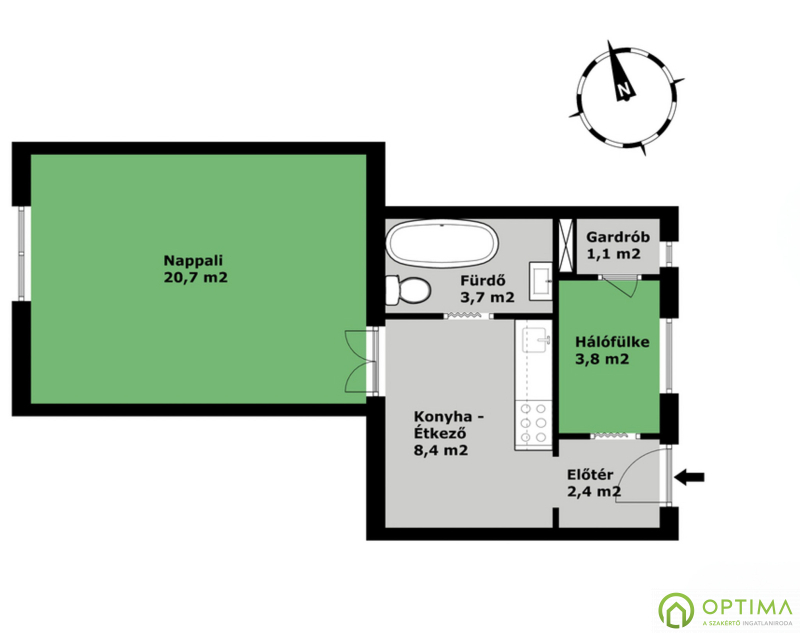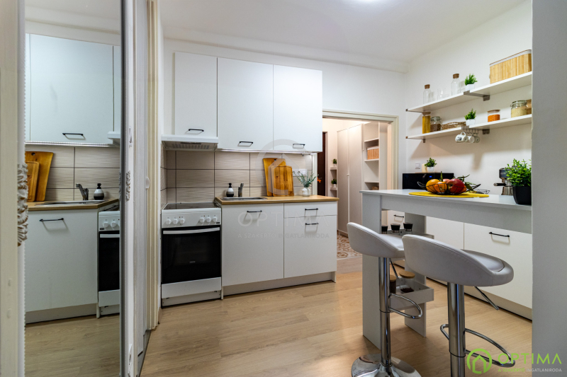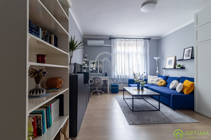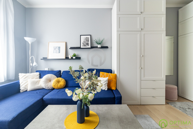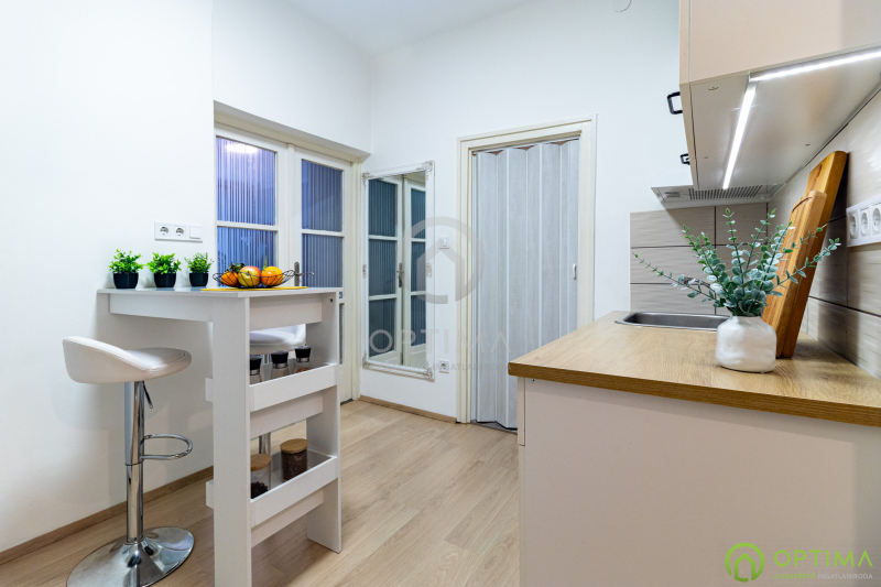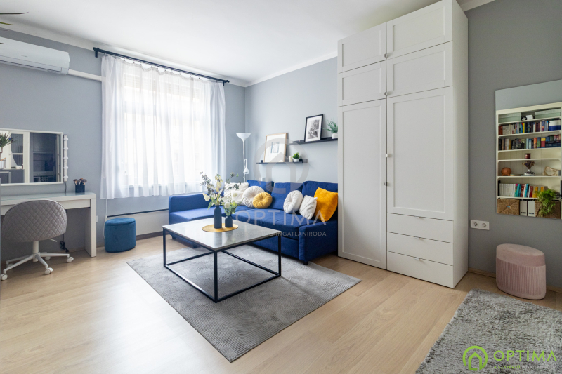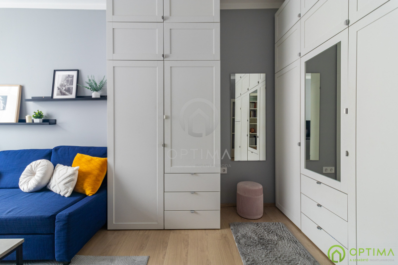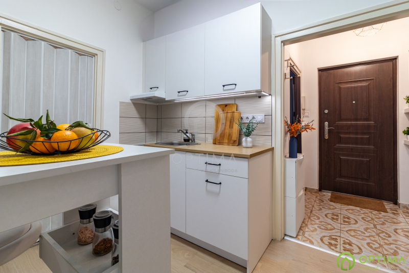 A lakás elosztása KITŰNŐ, köszönhető ez annak, hogy a helykihasználás maximalizálása megtörtént. A korábban egy szoba - hallos lakás egy kényelmesen használható, NAPPALI + 1 HÁLÓSZOBÁS otthonná lett alakítva, valamint a korábban "felesleges" térként használt hall is önálló, konyha-étkező funkciót kapott.