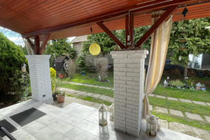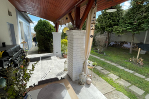 Kertre néző,fedett terasz,parkosított udvar,teljesen körbekerítve!