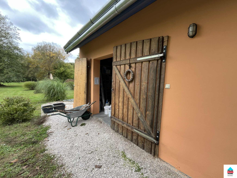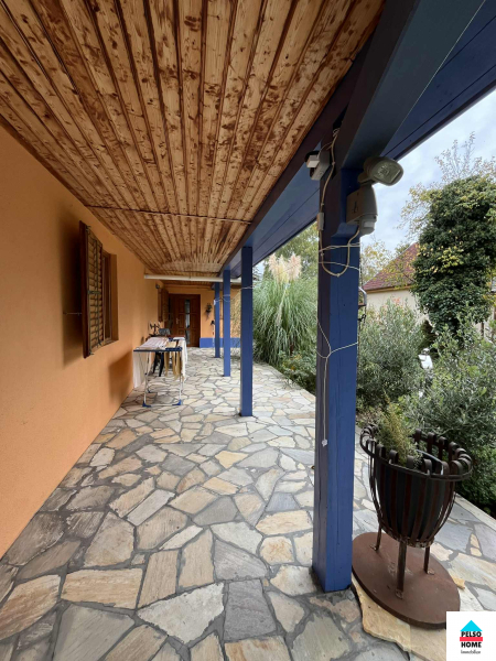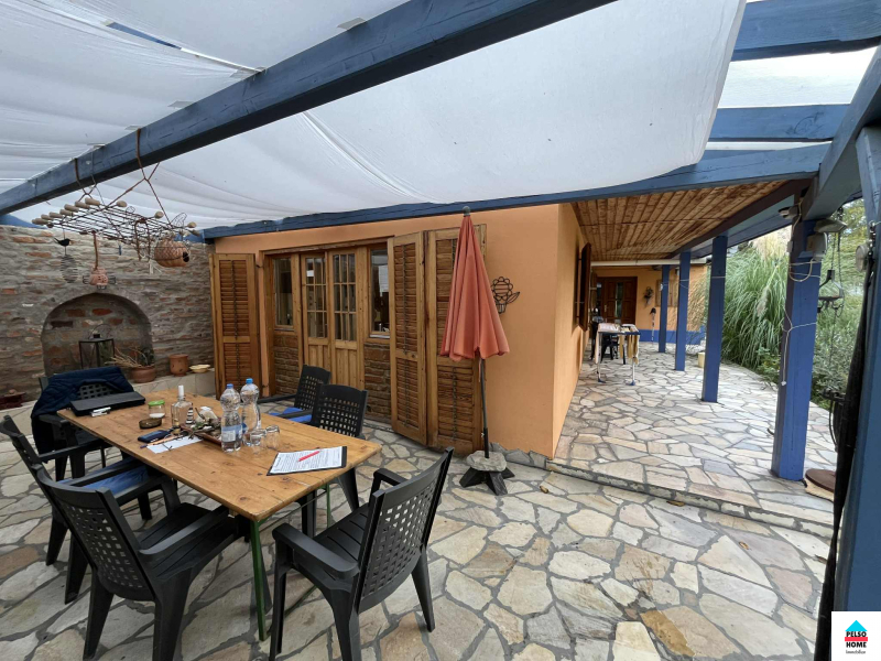 A lakóházban két szoba, nappali, előszoba, fürdőszoba, hatalmas konyha igényes bútorzattal és konyhaszigettel, két bejárattal és közvetlen fedett teraszkapcsolattal!