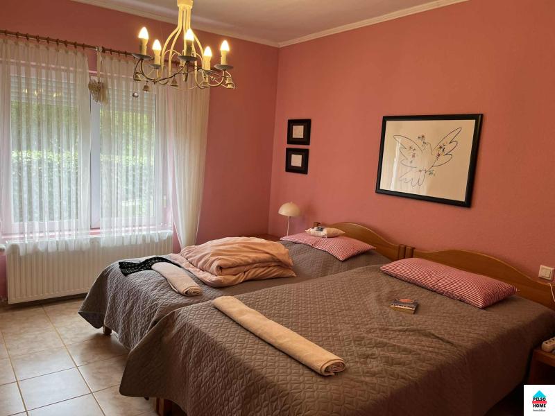 A Vendégház kb 50m2 alapterületű ami jelenleg wellnessként funkcionál, saját fürdővel, finn szaunával és tágas terekkel! A fűtést padlófűtés biztosítja! Az udvarban tárolók, műhely, nagy garázs, kút. A telek 3000m2 parkosított. igazi vidéki idill!