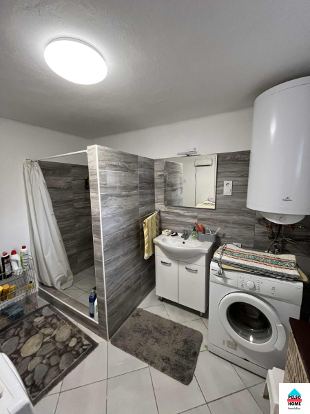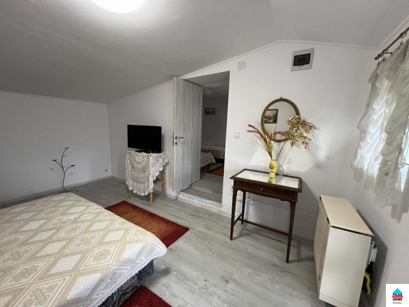 Vendégek részére külön 50m2-es apartman, két szobával, fürdővel (zuhany,wc) és egy étkezővel ami konyhának is kialakítható!