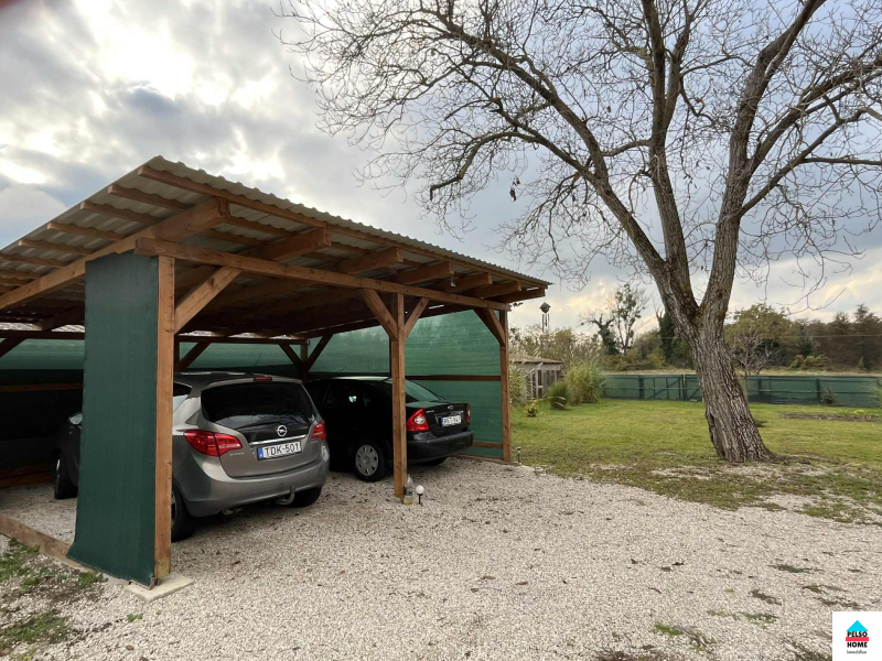 Dupla autóbeálló, műhely, fáskamra, kút, garázs, és sok-sok tárolóhely.