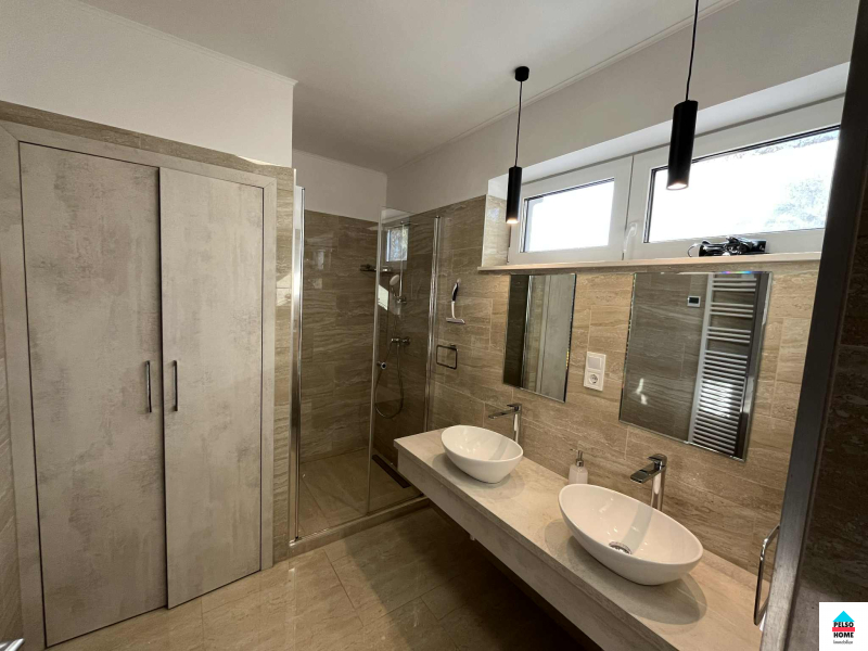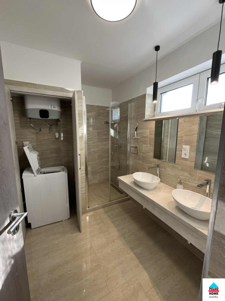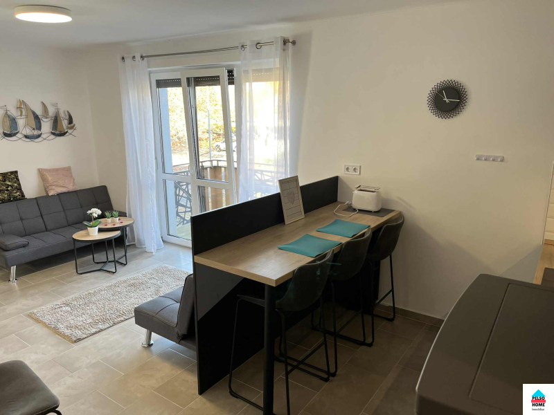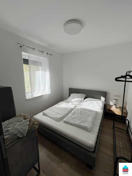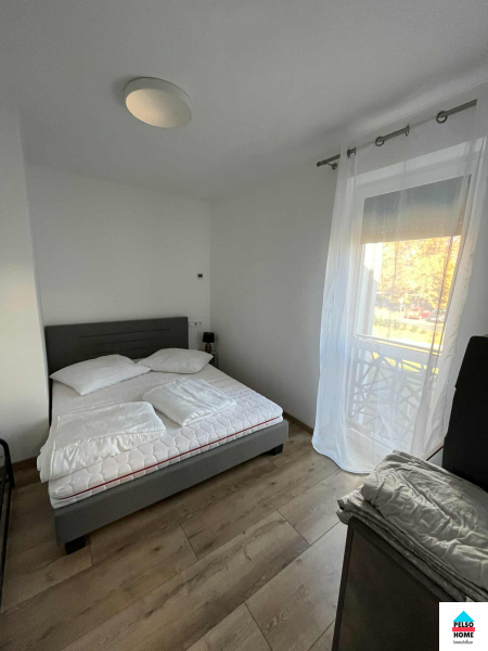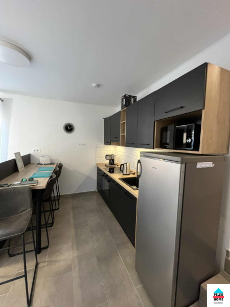 Diese 50 m² große Wohnung im 1. geschoss in Balatonmáriafürdő (Vasút tér/platz) ist komplett möbliert und ab sofort zu vermieten! Das Haus wurde 2022 erbaut. Zur Wohnung gehört ein eigener zugespert Parkplatz sowie ein gemeinsamer Abstellraum im Treppenhaus. Die Wohnung mit Nordausrichtung bietet Blick auf den Balaton und verfügt über zwei separate Schlafzimmer, Wohnzimmer, eine voll ausgestattete amerikanische Küche, Speisekammer, Flur, separates WC, Badezimmer mit Dusche und Kleiderschrank sowie einen 5 m² großen Balkon. Die Wohnung wird mit elektrischer Fußbodenheizung beheizt, die in jedem Zimmer individuell reguliert werden kann. Zusätzlich ist eine Klimaanlage mit Heiz- und Kühlfunktion vorhanden. Die Immobilie ist hervorragend isoliert und schallisoliert, die Nebenkosten sind minimal. Wasser und Strom werden über separate Zähler abgerechnet, Gas ist nicht vorhanden. Internet- und TV-Anschluss sind vorhanden. Die monatlichen Nebenkosten betragen 30 € (Müllgebühr, Beleuchtung etc.).
