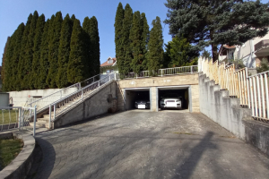 Két nagy autó számára található önálló garázs, de az udvaron még elhelyezhető néhány autó.