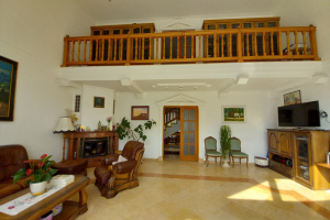 A tágas nappali nyitott galáriás, mely által még nagyobbnak érezhetjük a helyiséget. A galérián könyvtár kapott helyet.