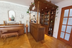 A ház hátsó teraszához kapcsolódik a férfiak elvonulására helyet biztosító, bárpulttal kandallóval ellátott borospince.