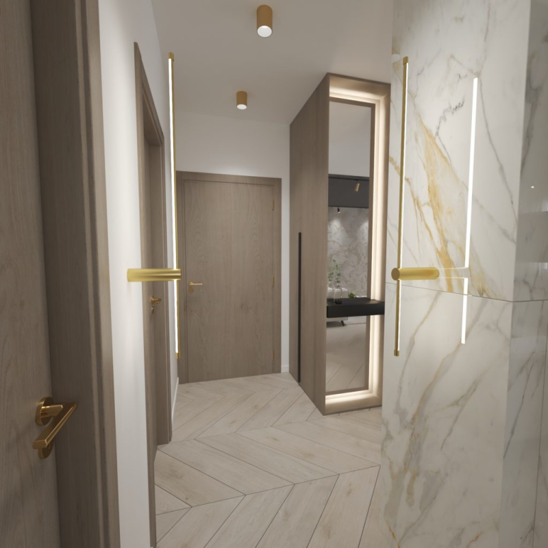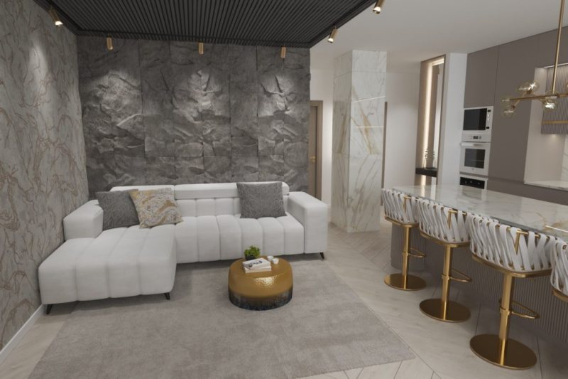 -3x glettelt és festett falak, design tapétákkal és falpanelekkel kiegészítve
