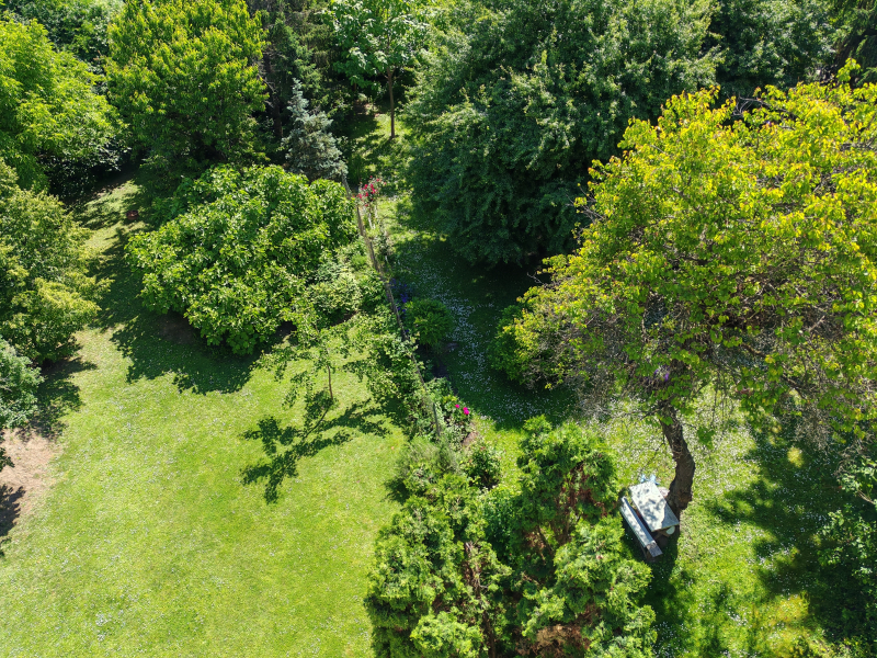 A ház 1988-ban épült, folyamatosan karbantartott, rendezett. A háznak kb 6-700 m2-nyi saját közös használatú, gondozott kertje van.