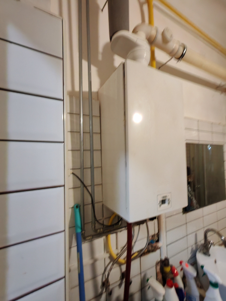 A lakás fűtése egyedi cirkokazánnal megoldott. A kazán a közelmúltban kondenzációs kazánra lett cserélve.