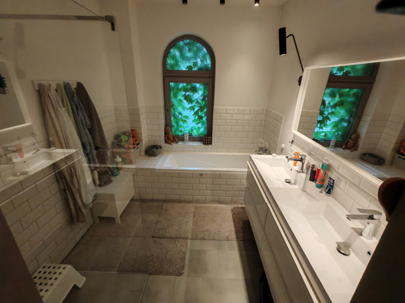 A szinten található még hálószoba, káddal és zuhanyfülkével felszerelt fürdőszoba. A szauna a hozzá tartozó merülőmedencével szolgálja a lakók kényelmét.