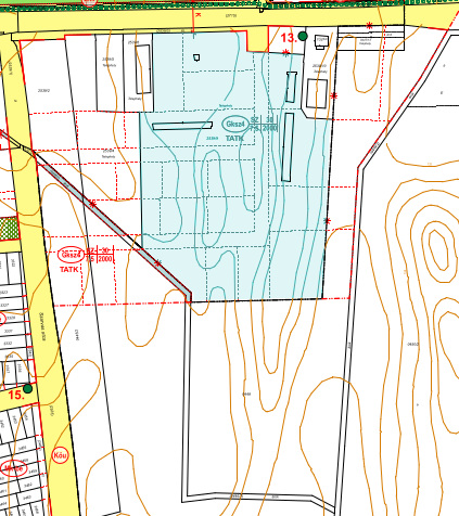 A Gksz-4 övezetben szabadon álló építési mód szerint 7,5 m magasságú épület emelhető 40% zöldfelület meghagyása mellett.